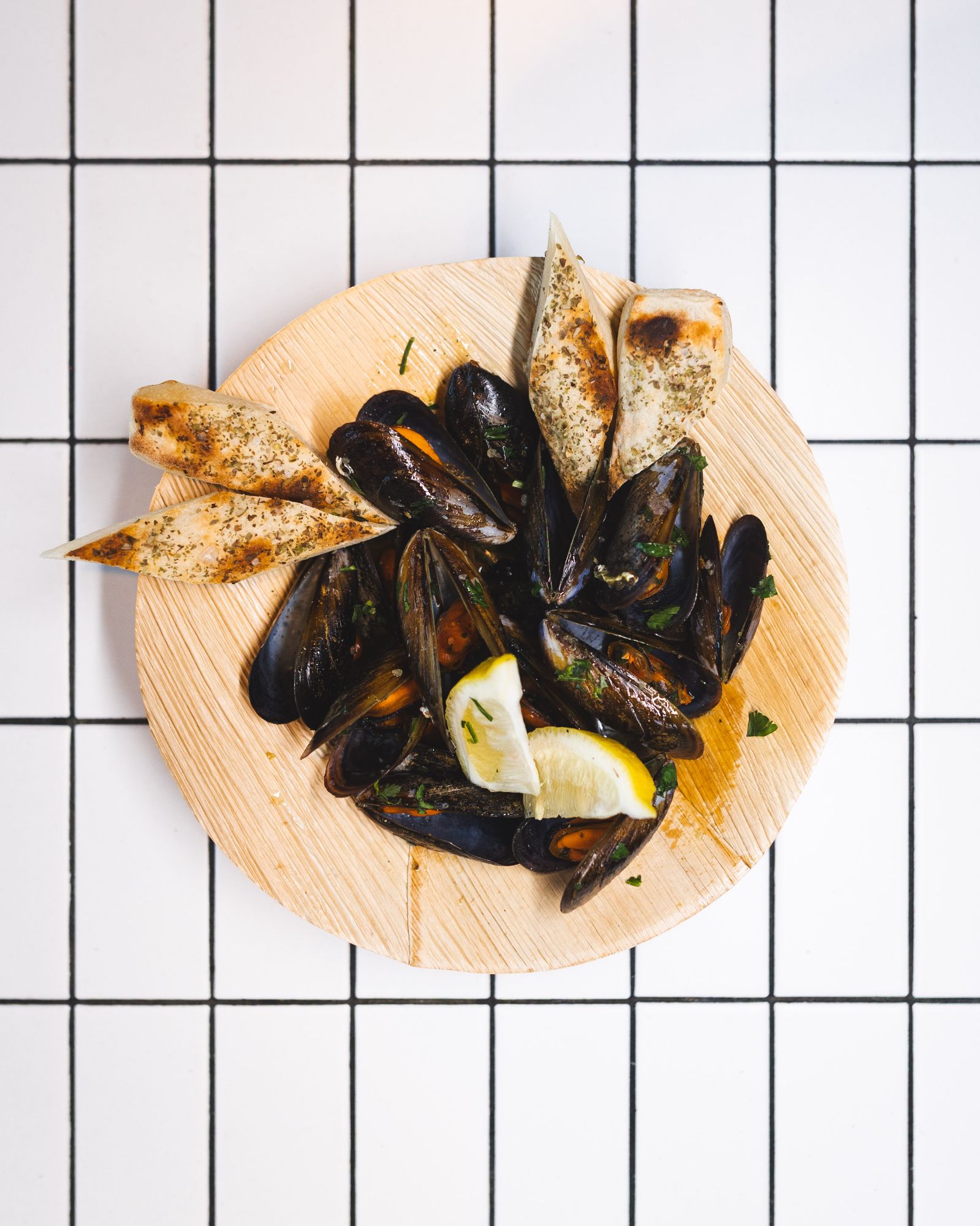 zupa rybna z kremem pomidorowym, mule, krewetki, seler naciowy, papryka chili, serwowana z grzankami z masłem czosnkowym